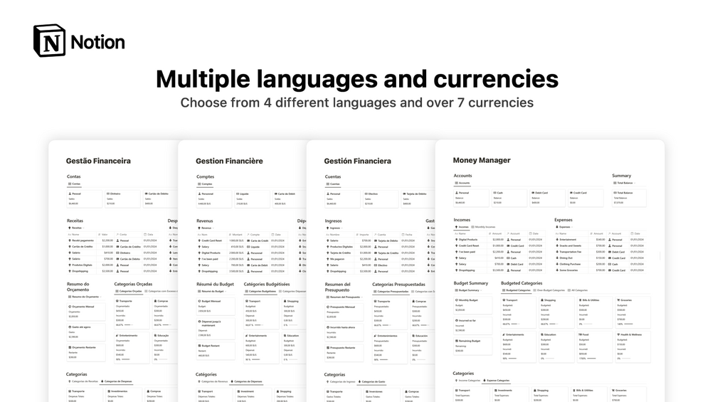 After purchase, you will receive a link that will direct you to the Notion Money Manager template. Simply duplicate the template to your Notion workspace and you're ready to start using it!